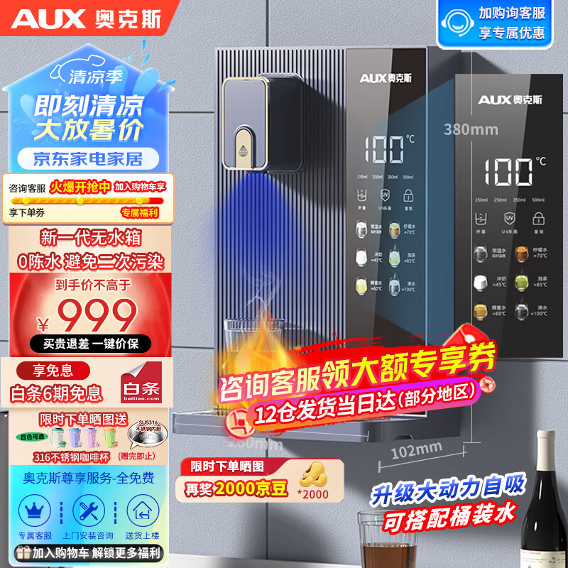 奥克斯家用净水器伴侣 壁挂式饮水机 即热即饮 全通量适配 无水箱不存水 全水路杀菌速热管线机YGX-2201W价格:999.00元!