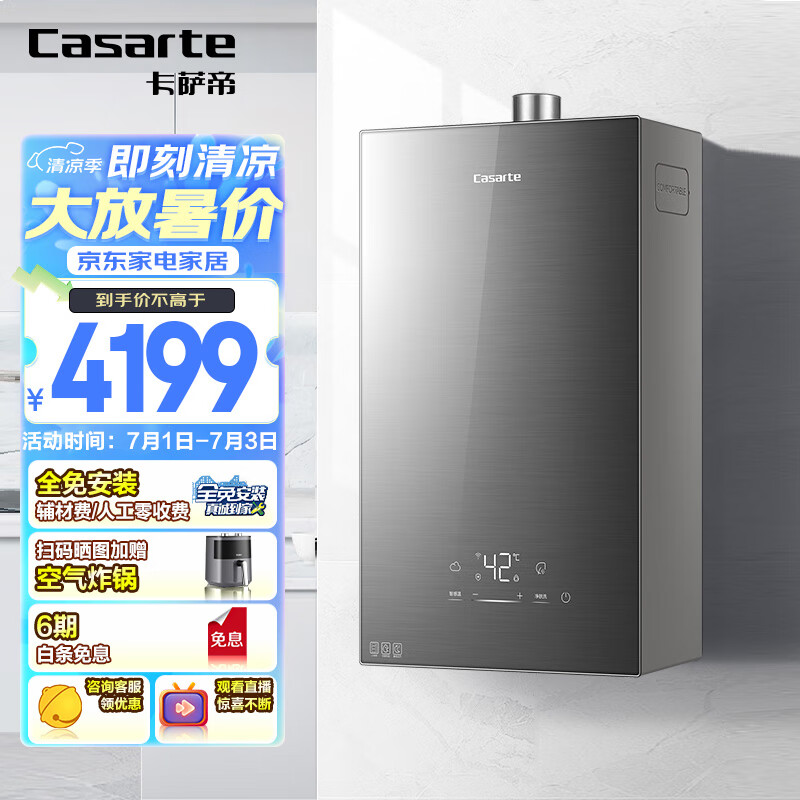 卡萨帝(Casarte)16升燃气热水器天然气【CW3】母婴级恒温 水伺服 静音 下置风机小尺寸JSQ31-16CW3(12T)U1以旧换新价格:4199.00元!