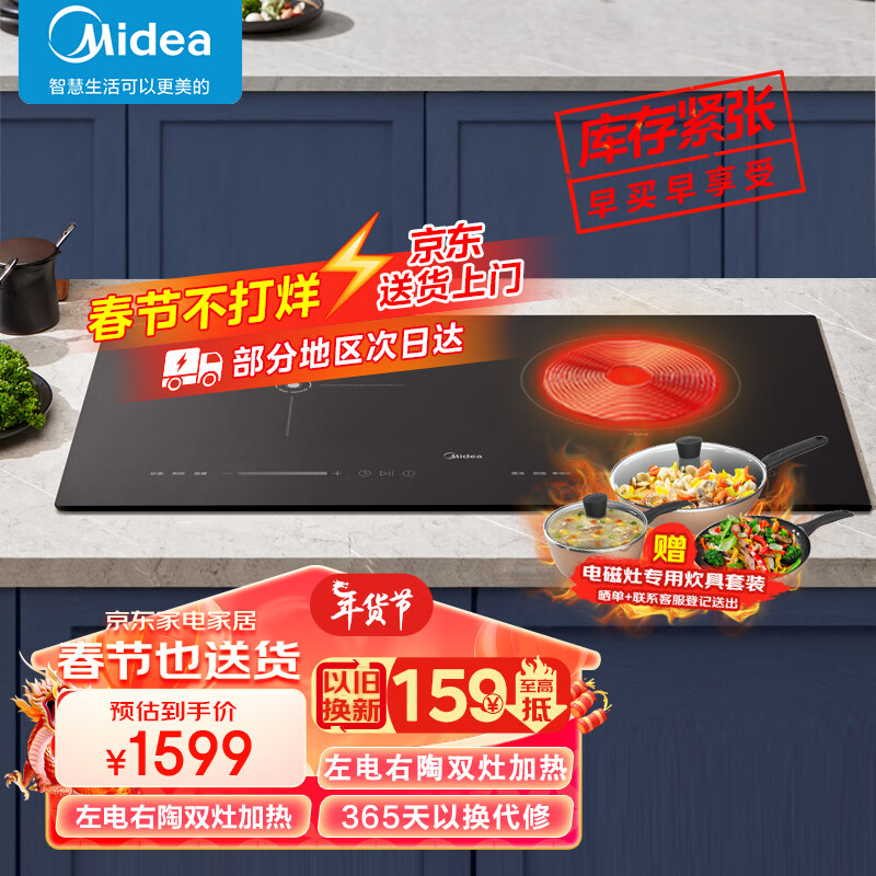美的(Midea)电磁炉双灶 电磁灶嵌入式家用大功率 电陶炉双边独立定时预约滑触双控 一电一陶不挑锅MC-DZE3551价格:1394.00元!