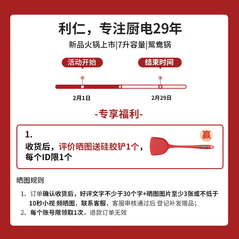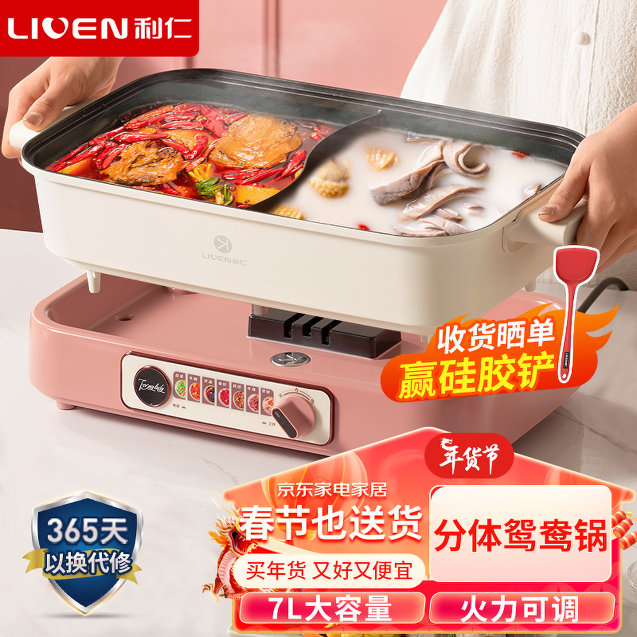 利仁(Liven)鸳鸯锅电火锅专用锅电煮锅电锅多功能锅多用途料理锅分体式家用电热锅火锅锅7升大容量 DHG-700BY价格:239.00元!