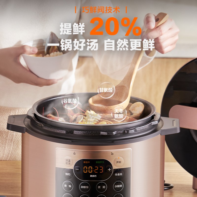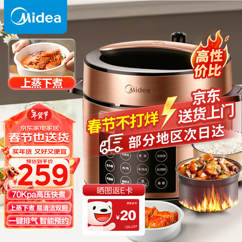 美的(Midea)提鲜系列电锅 5L全自动家用智能预约 上蒸下煮 不粘双胆煲汤炖肉YL50Q3-451电饭煲高压锅2-6人价格:289.00元!