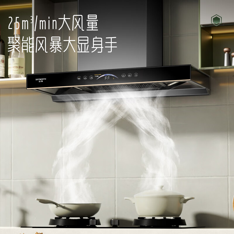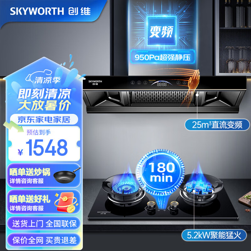 创维(Skyworth)油烟机燃气灶套装 25大吸力变频欧式顶吸烟灶套餐 彩屏智控 自动清洗Y016+Z211B 天然气价格:1648.00元!