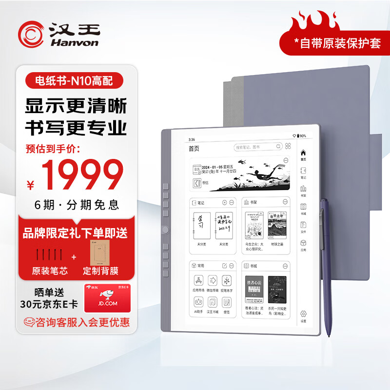 汉王(Hanvon)N10手写电纸本 10.3英寸电子书阅读器墨水屏电纸书平板电子笔记本智能办公本冰山灰高配价格:1999.00元!