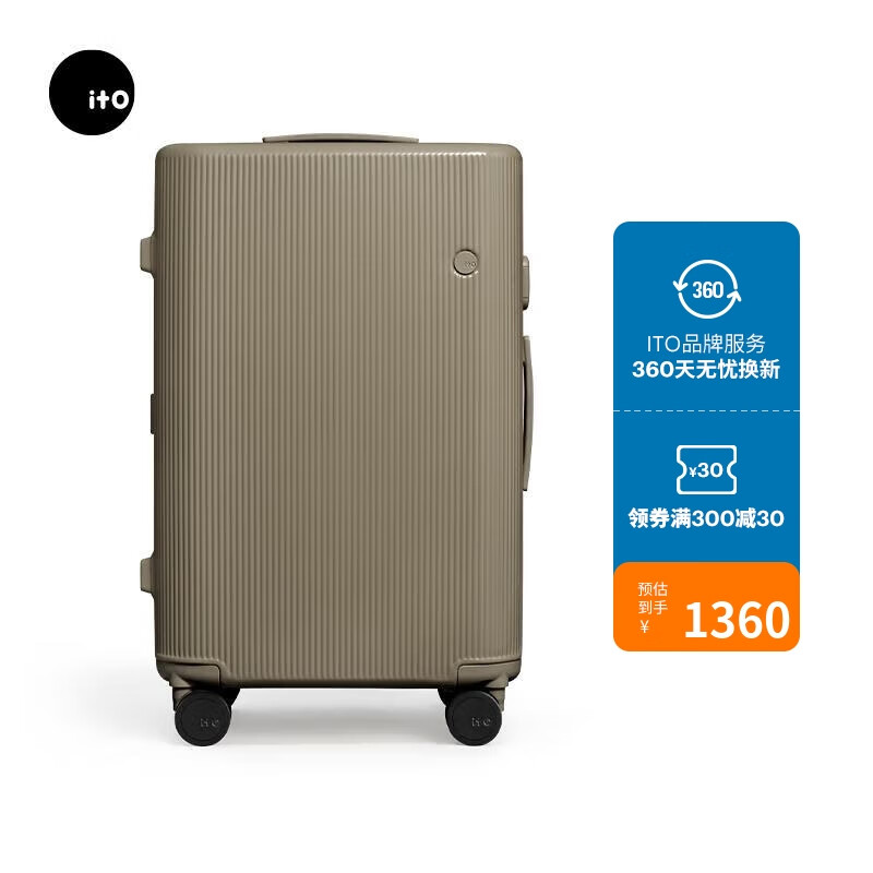 ITO行李箱PISTACHIO2拉杆箱大容量男女旅行箱登机箱平原灰20英寸价格:1390.00元!