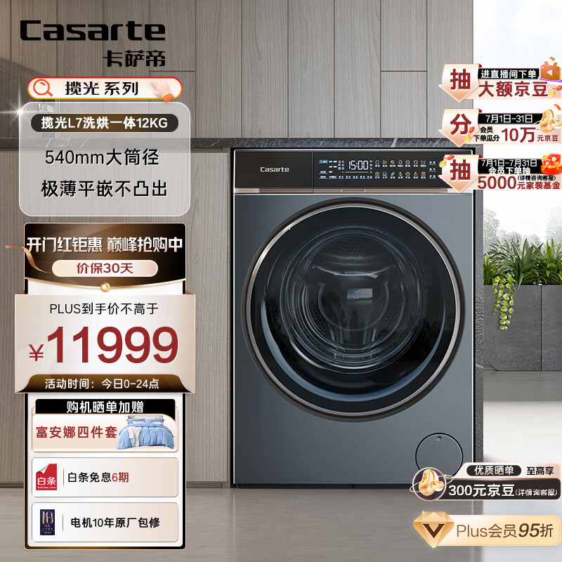 卡萨帝(Casarte)揽光L7滚筒洗衣机全自动家用 12公斤洗烘一体机 540大筒径超薄平嵌 精华洗快净省 C1 HDN12L7ELLU1价格:11999.00元!