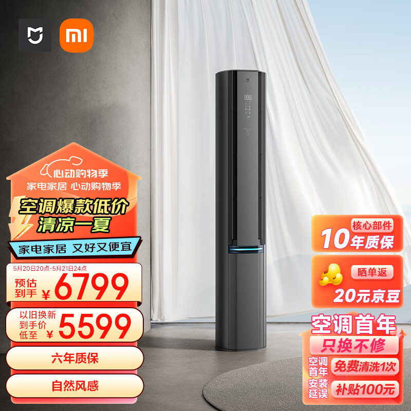 小米3匹 超一级能效 双出风 变频冷暖 智能自清洁 客厅圆柱空调柜机 72LW-NA11/M1A1价格:6799.00元!