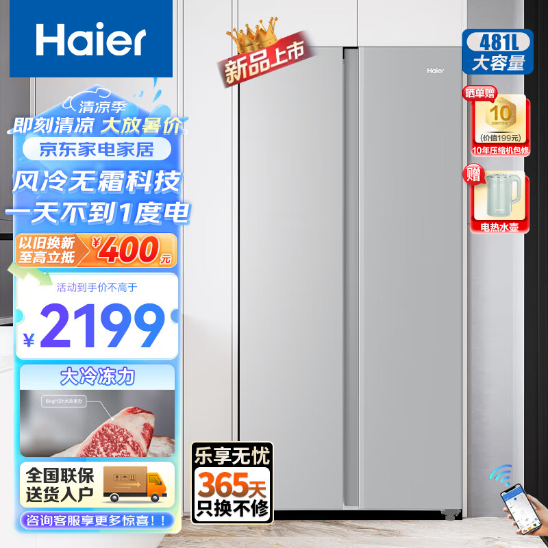 海尔(Haier)对开门冰箱 481升风冷无霜 智能智控 超薄家用电冰箱双变频家用电冰箱 双开门冰箱大容量节能省电价格:2199.00元!
