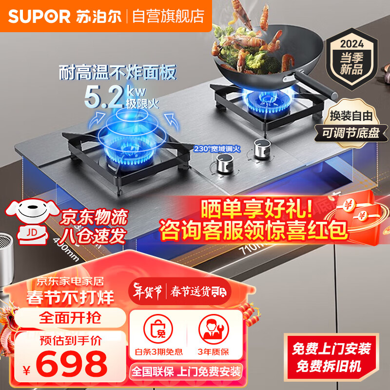 苏泊尔(SUPOR)家用燃气灶天然气煤气灶5.2KW大火力台式嵌入式两用灶具不锈钢液化气猛火灶耐高温不炸面板NS32 【管道天然气】5.2KW蓝焰猛火价格:799.00元!