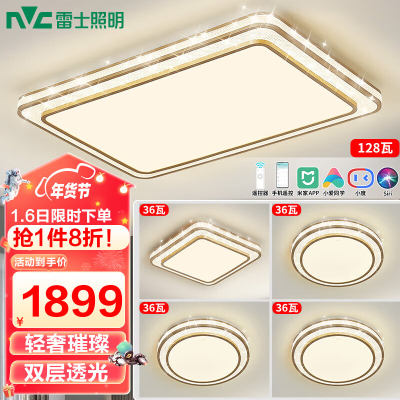 雷士(NVC)LED吸顶灯 轻奢高级客厅书房卧室餐厅灯具 AI智控双层发光灯饰价格:2373.00元!