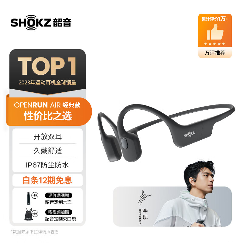 韶音(SHOKZ)OpenRun Air骨传导蓝牙耳机运动耳机开放式耳机跑步骑行不入耳佩戴 10分钟闪电快充 石墨黑价格:798.00元!