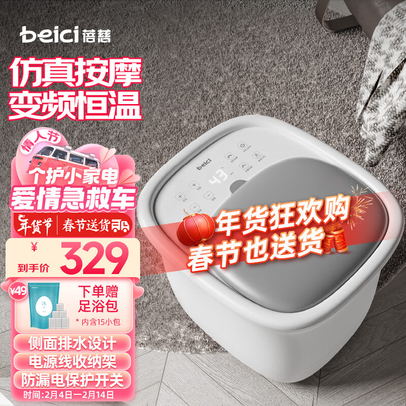蓓慈(beici)泡脚桶全自动按摩足浴盆电动恒温加热洗脚桶自带脚轮泡脚盆送父母生日节日礼物G1价格:399.00元!