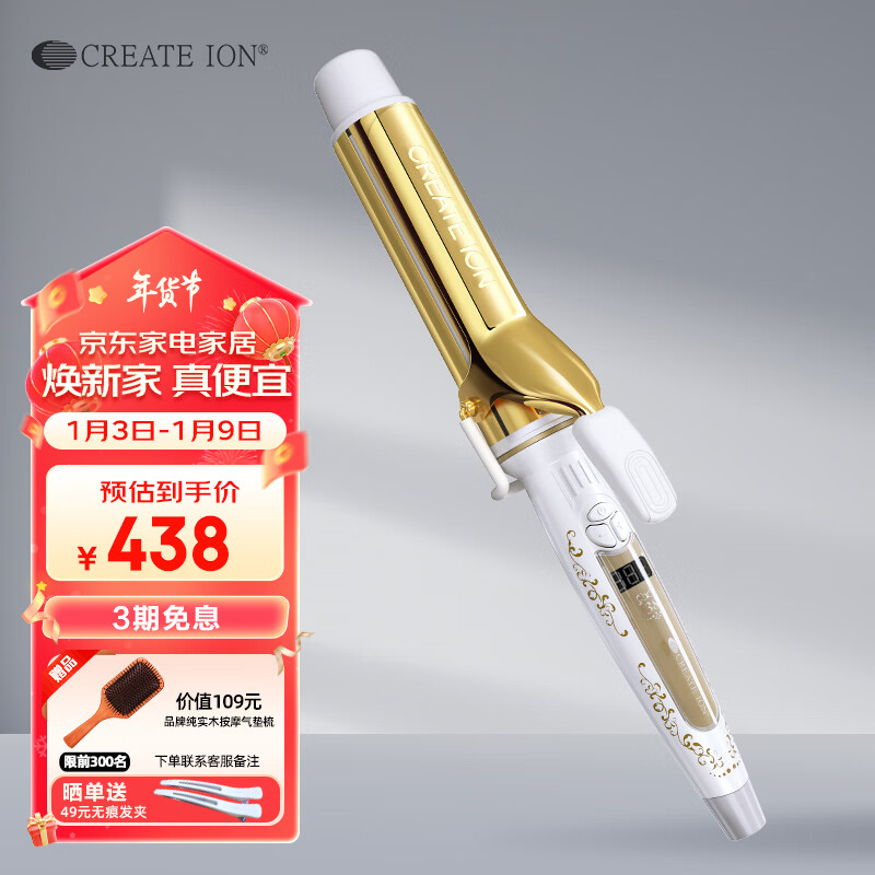 Create Ion创离子 宫村浩气电卷发棒 黄金系列第二代38mm大号大卷大波浪韩式 长发卷发神器不伤发价格:438.00元!