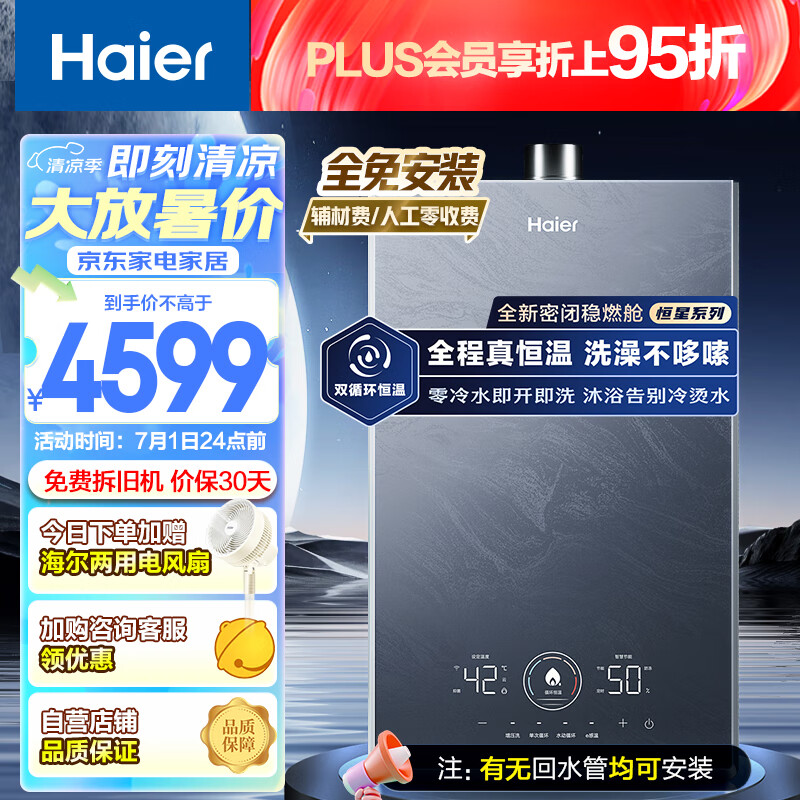 海尔(Haier)16升【恒星KN7S】零冷水燃气热水器天然气双循环恒温 TSI增压静音JSQ31-16KN7SFRAGU1【以旧换新】价格:4999.00元!