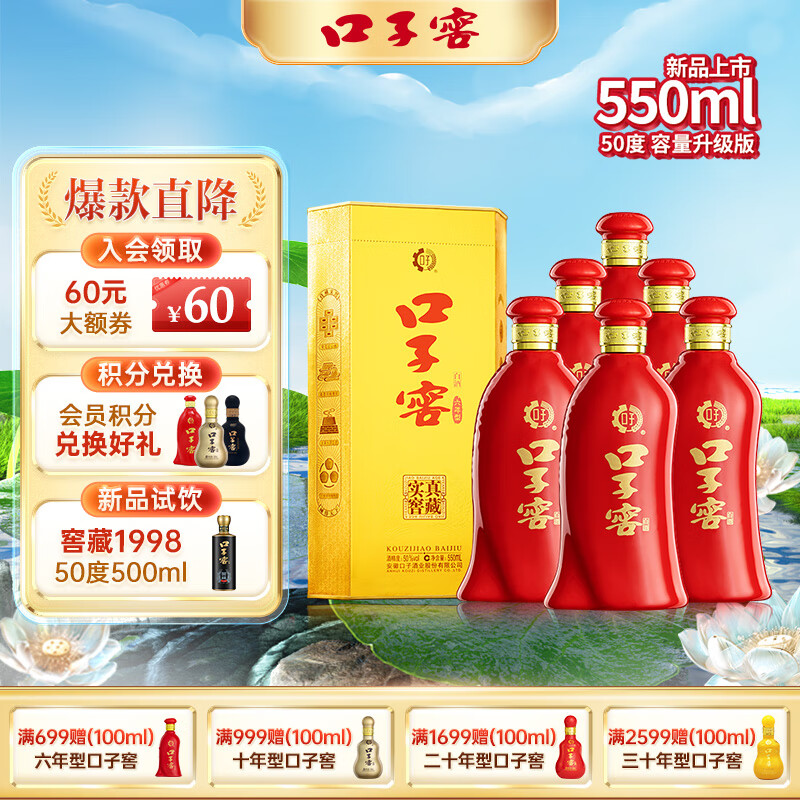 口子窖 六年型 兼香型白酒 50度 550ml*6瓶整箱装 【容量升级】价格:1164.00元!