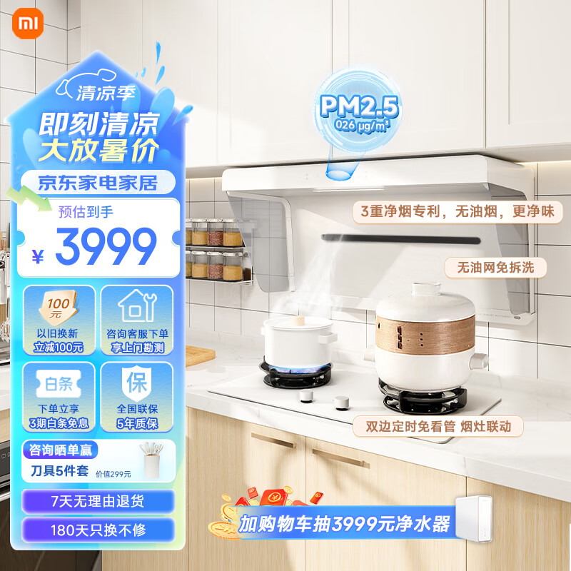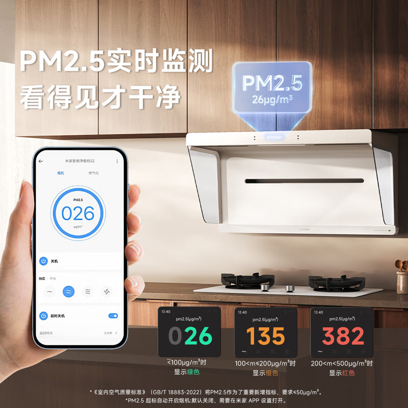 米家小米抽油烟机净烟机小白净S2 白色家用吸油烟机7字型超薄 天然气烟灶套装变频侧吸烟灶联动价格:3999.00元!