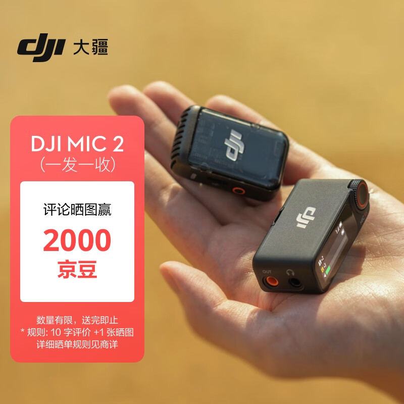 大疆DJI Mic 2(一发一收) 专业音质无线麦克风 直播降噪收音麦 手机相机收音器蓝牙一拖一领夹麦价格:1499.00元!