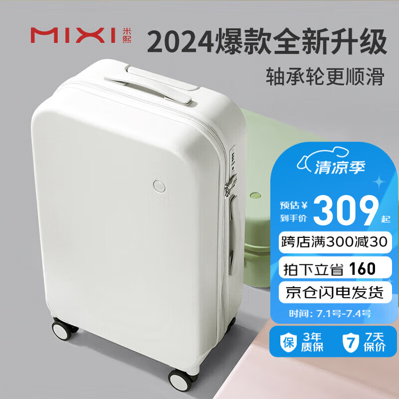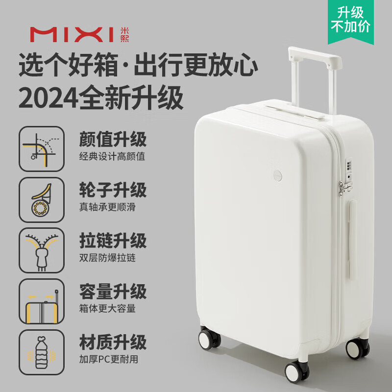 米熙高颜值登机箱男拉杆箱子行李箱飞机旅行箱包密码箱女白色20英寸小价格:469.00元!