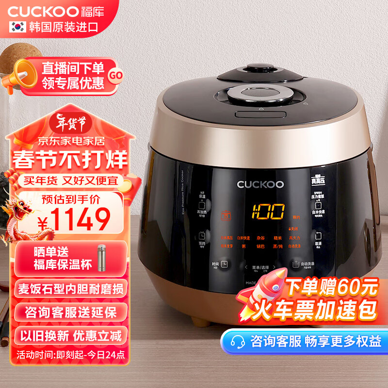 福库CUCKOO麦饭石系列家用多功能电饭煲韩国进口不粘内胆高压煮饭煲锅3升年货2-6人份CRP-PK0680FG价格:1149.00元!