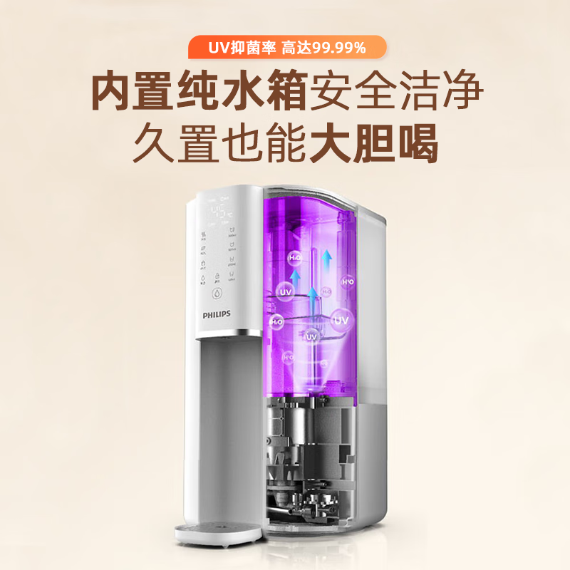飞利浦(PHILIPS)加热净水器 家用即热饮水机 RO反渗透台式直饮水机 免安装净水机 净饮一体机ADD6815价格:1199.00元!
