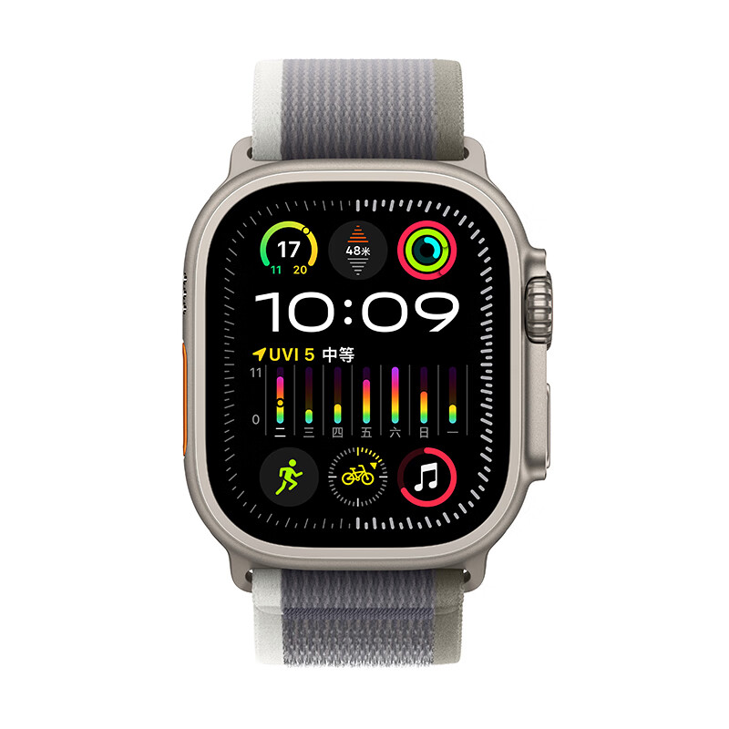 Apple Watch Ultra2 智能手表 49毫米钛金属表壳绿配灰色野径回环式表带S/M 【蜂窝款】MRFN3CH/A价格:6499.00元!