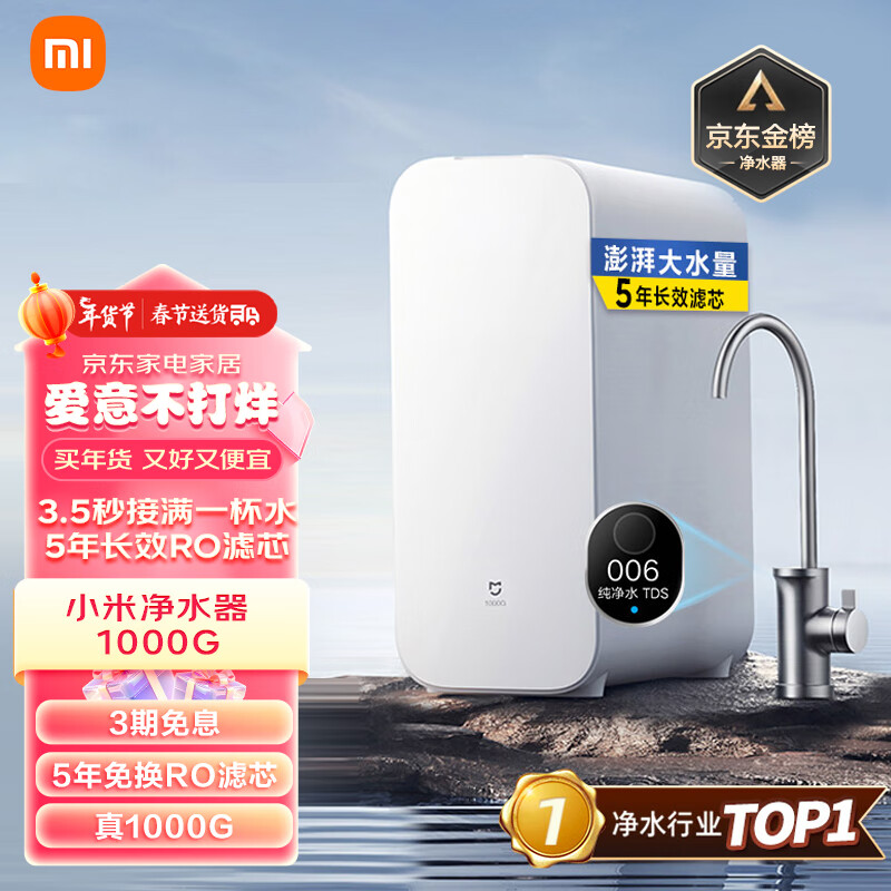 米家小米净水器家用净水机1000G 新鲜无陈水低噪省水 5年RO反渗透 厨下直饮净水器 2.65L/分价格:1799.00元!