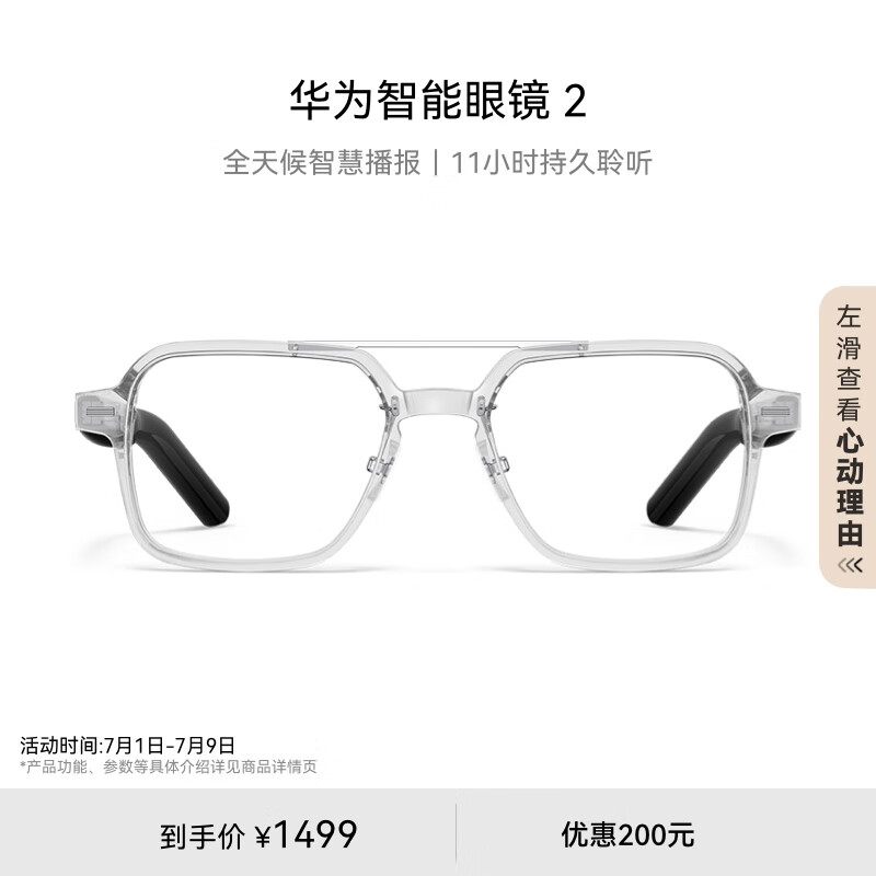 华为耳机 智能眼镜 2 开放式耳机 飞行员光学镜 飞行员光学镜 无线双耳立体声/手势控制价格:1499.00元!
