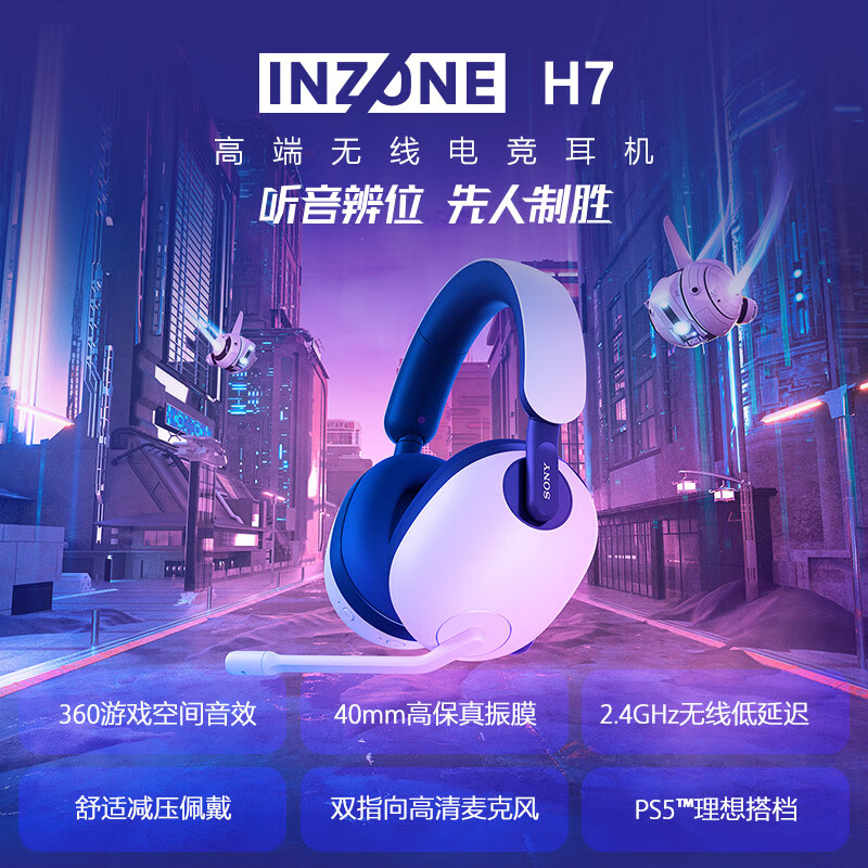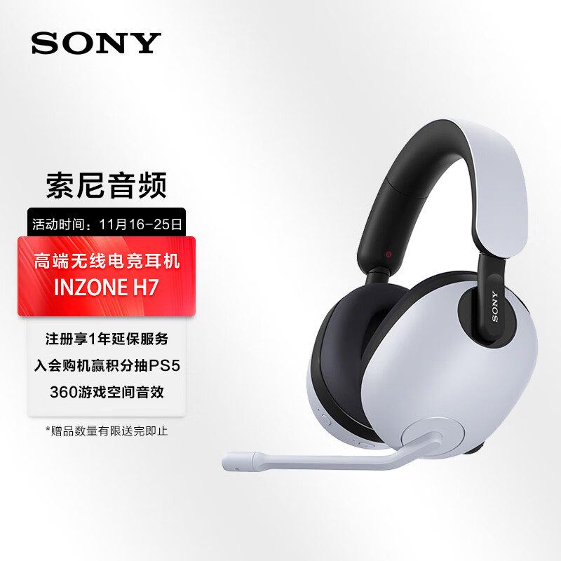 索尼(SONY)INZONE H7 高端电竞游戏耳机 无线蓝牙 头戴式 2.4GHz 虚拟7.1声道 高清麦克风 ps5适用价格:1799.00元!