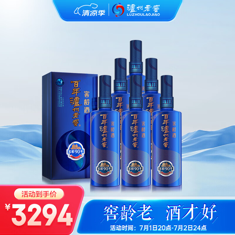 泸州老窖 窖龄90年 浓香型白酒 52度500ml 6瓶 整箱装(内含礼品袋)价格:3518.00元!