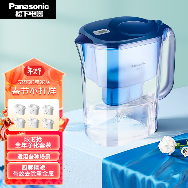 松下(Panasonic)过滤净水器家用滤水壶净水壶(1壶6芯套装)自来水过滤器3.5L滤水壶 蓝色升级款价格:259.00元!