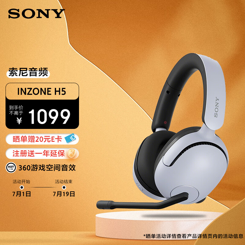 索尼(SONY)INZONE H5 性能之选无线电竞游戏耳机 虚拟7.1 2.4GHz 3.5mm 高清麦克风 电脑耳麦 PS5适配 白色价格:1099.00元!