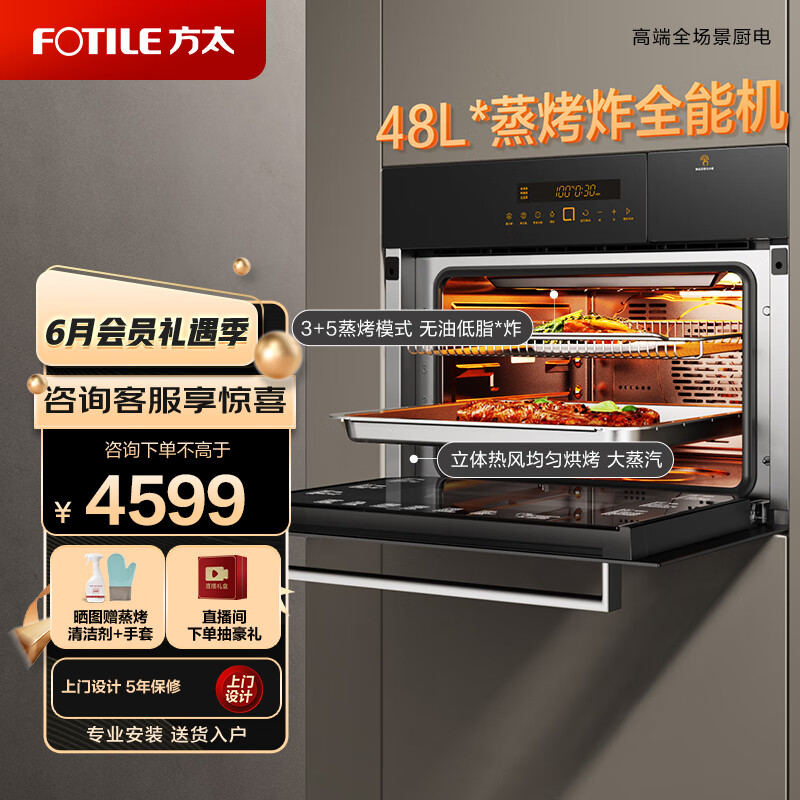 方太蒸烤箱一体机嵌入式蒸箱烤箱家用多功能大容量48/42L蒸烤一体机蒸烤空气炸锅三合一以旧换新ZK-E1价格:4599.00元!