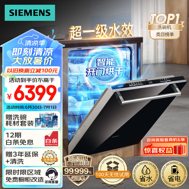 西门子黑魔镜系列14套全能舱auto洗碗机嵌入式升级款636pro变频一级水效智能烘干存储SJ63EX00KC含黑门板价格:6399.00元!