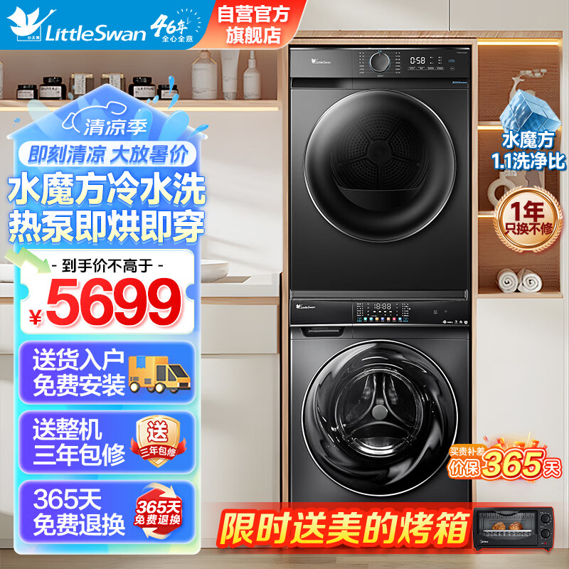 小天鹅(LittleSwan)10公斤水魔方全自动滚筒洗衣机热泵烘干机一体机防 超薄全嵌 智能投放 618+02升级屏套装价格:5499.00元!