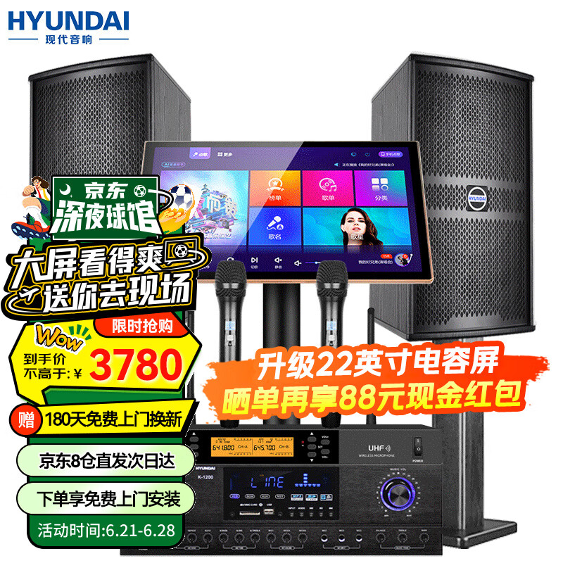 HYUNDAI/现代家庭ktv音响唱K歌设备全套装 家用影院点歌机一体机 卡拉ok点唱机组合套装音响 2024旗舰版10吋3T套装【店长力荐高性价比】价格:4180.00元!