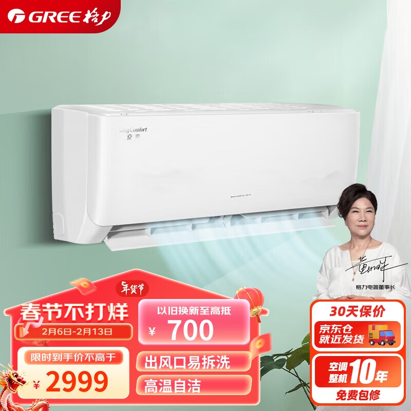 格力(GREE)1匹 京爽 新一级能效 变频冷暖 高温自清洁 壁挂式空调挂机 KFR-26GW/(26587)FNhAe-B1价格:2999.00元!