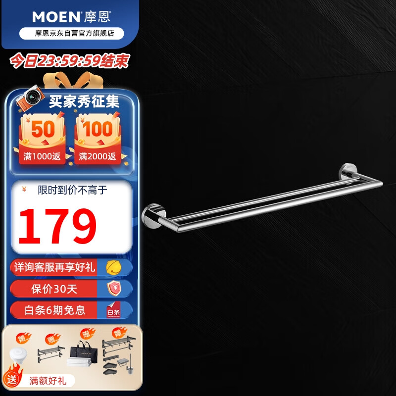 摩恩(MOEN)304不锈钢双杆毛巾杆 五金卫浴挂件 毛巾架ACC1902价格:179.00元!