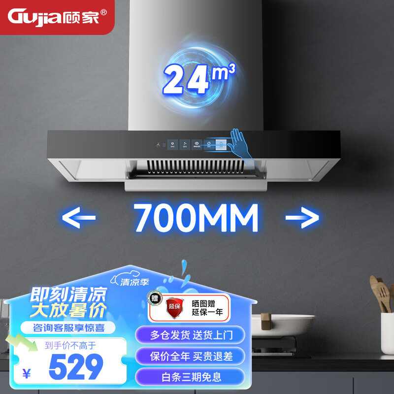 顾家(Gujia)抽油烟机欧式经典按键24立方大吸力家用顶吸T型大吸力油烟机CXW-328-G136(包安装) 价格:729.00元!