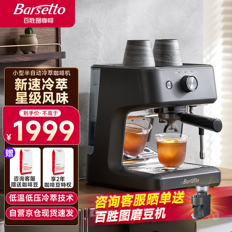 Barsetto百胜图意式半自动冷萃咖啡机小型咖啡机 智能控温 泵压浓缩萃取 一体式蒸汽打奶泡机BAE-M2C石墨黑价格:2599.00元!