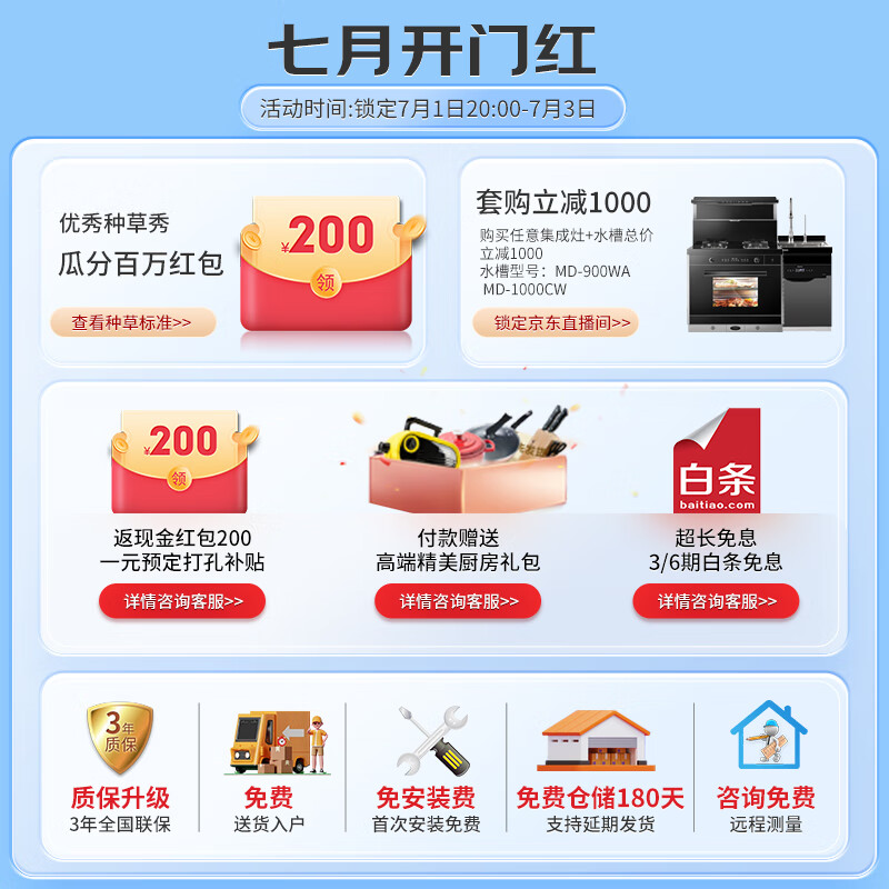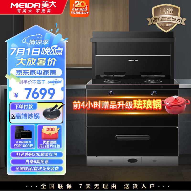 美大(MEIDA)二星消毒柜集成灶一体S9-A 语音声控 变频静音油烟机 天然气价格:7699.00元!