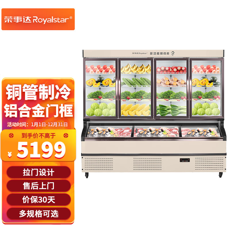 荣事达2.2米点菜柜商用立式冷藏冷冻柜低温多功能明档柜开门款饭店串串凉菜麻辣烫展示柜LMD-2218QK价格:5199.00元!