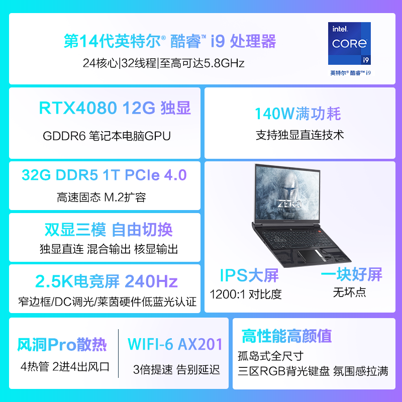 雷神(ThundeRobot) ZERO2024银翼灰/橙独显轻薄全能骨灰玩家级电竞游戏本AI设计师建模移动工作站911旗舰笔记本电脑 14代酷睿i9HX|4080|32G1T原装价格:19999.00元!
