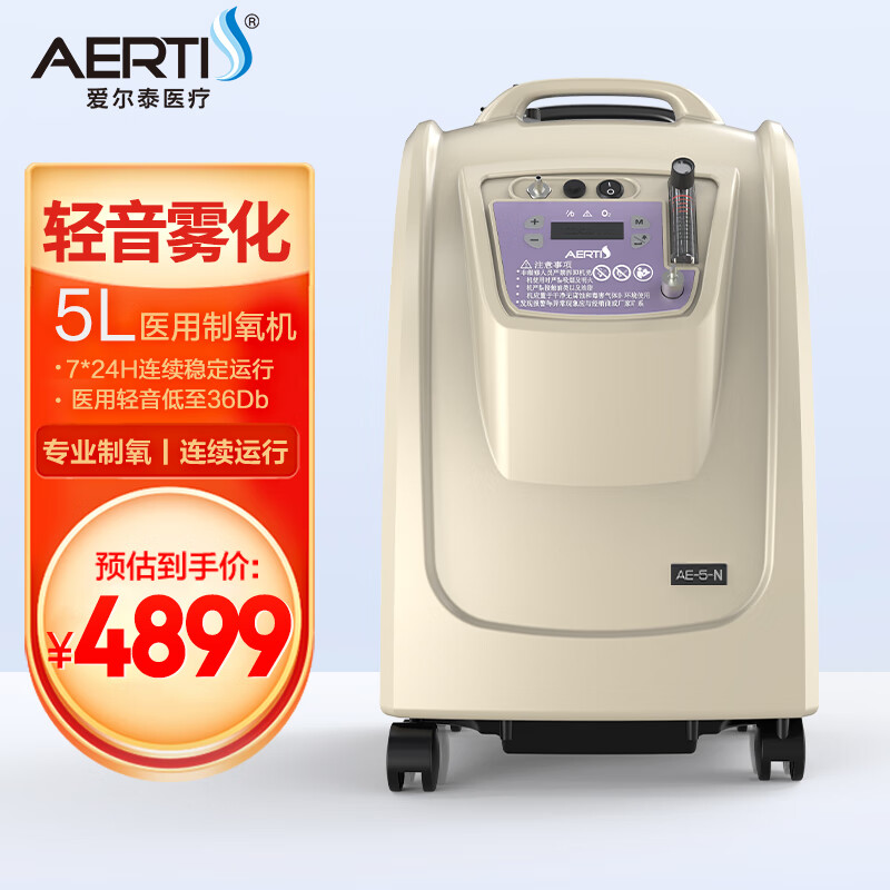 爱尔泰 (AERTI)氧机医用5L升吸氧机低噪音老人家用氧气机肺病雾化高原 医用降噪5升制氧机带雾化AE-5N价格:5999.00元!