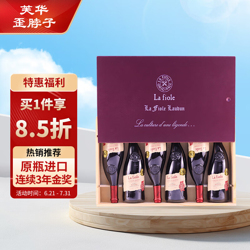 芙华(La Fiole)歪脖子红酒 法国原瓶进口 隆河干红葡萄酒 750ml*6支 整箱礼盒装价格:799.00元!