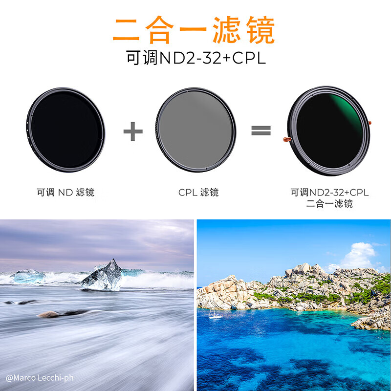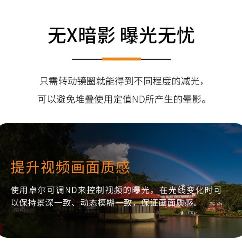 卓尔(K&F CONCEPT)可调ND镜CPL镜二合一 ND2-32减光镜28层镀膜多档位调节一镜两用多功能中灰偏振镜 72mm价格:499.00元!