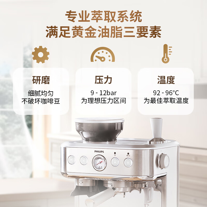 飞利浦(PHILIPS)双子星系列意式家用胶囊半自动咖啡机双手柄设计专业萃取奶泡研磨一体PSA2218/00价格:2999.00元!