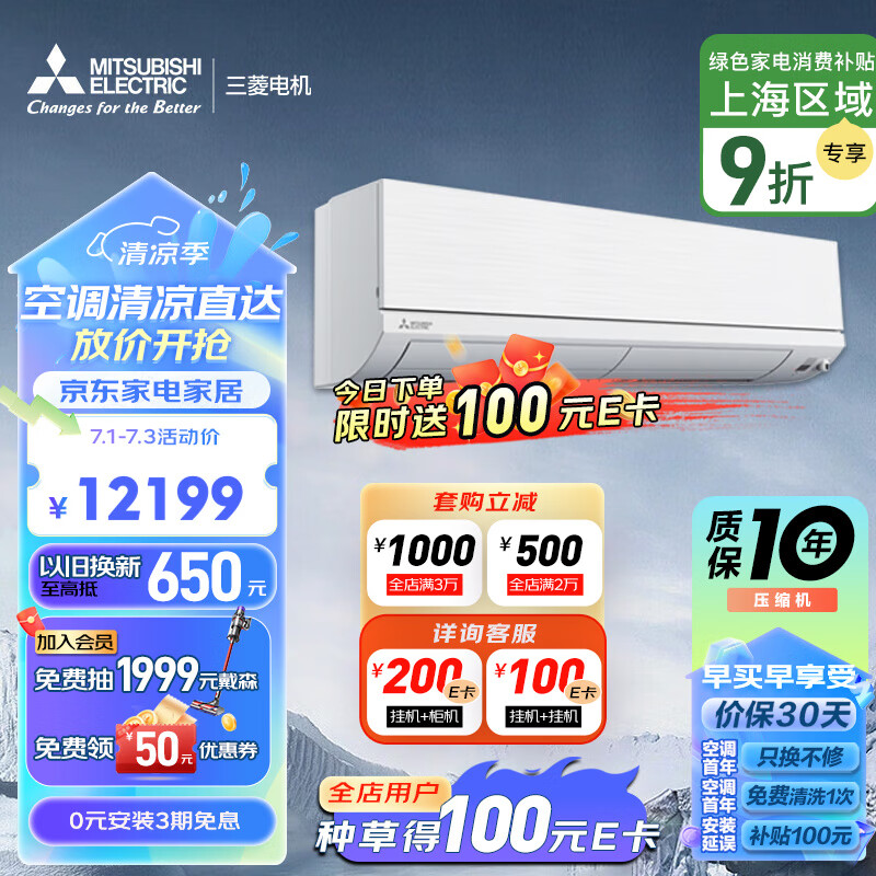 三菱电机23-35㎡适用 以旧换新 新一级能效 2.5匹 变频冷暖 挂机强劲除湿WIFI智能 一价全包MSZ-WX20VFK价格:12199.00元!