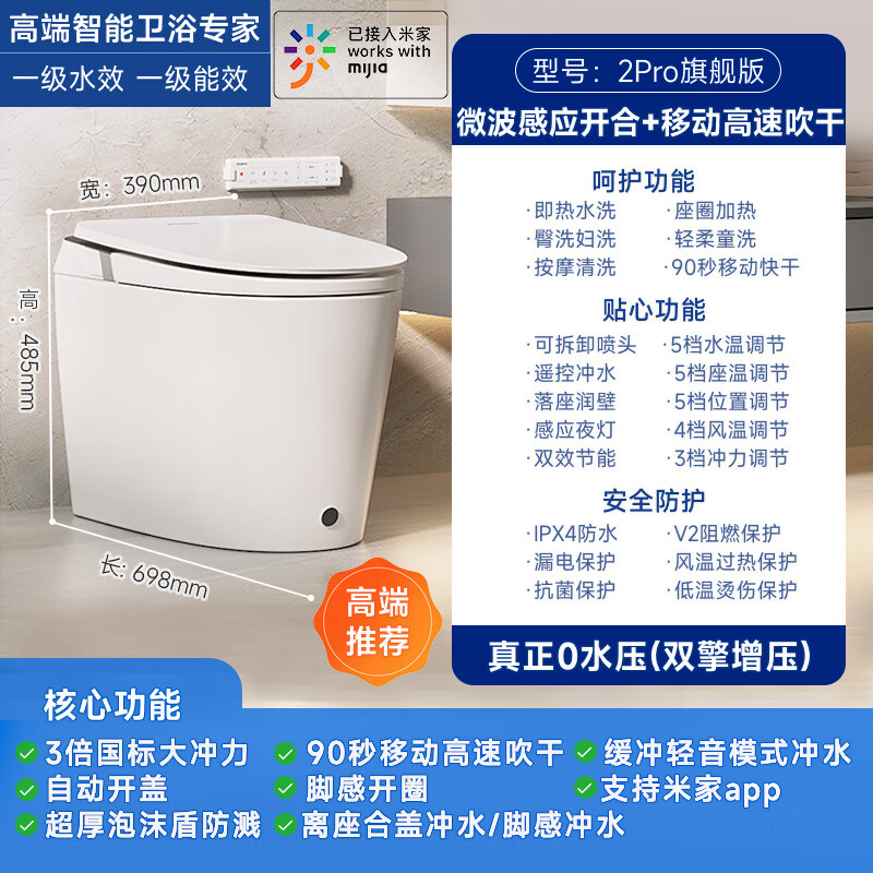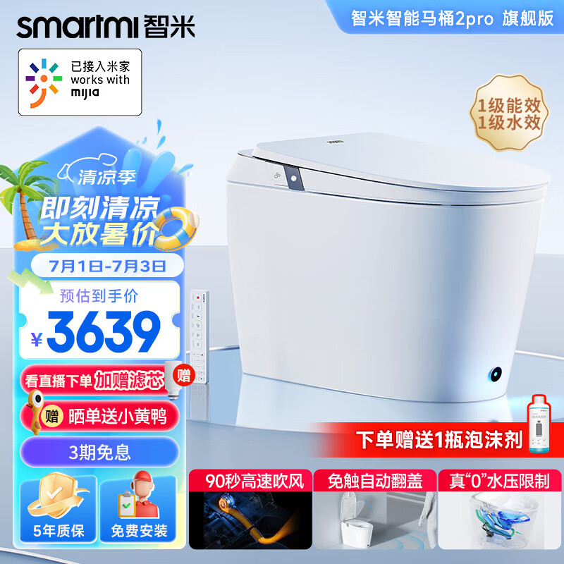 智米(SMARTMI)智能马桶泡沫盾无水压自动翻盖智能坐便器米家2PRO价格:4239.00元!