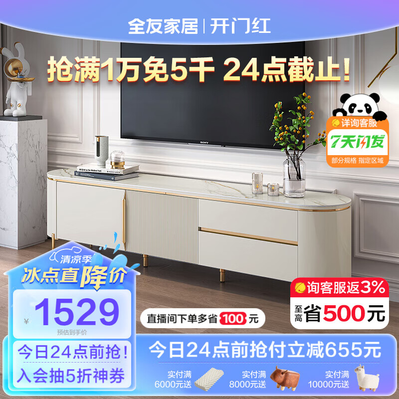 全友家居 电视柜 轻奢风岩板电视柜客厅高脚家具简约小户型收纳储物柜127810-1 加高电视柜(长2M)价格:2184.29元!