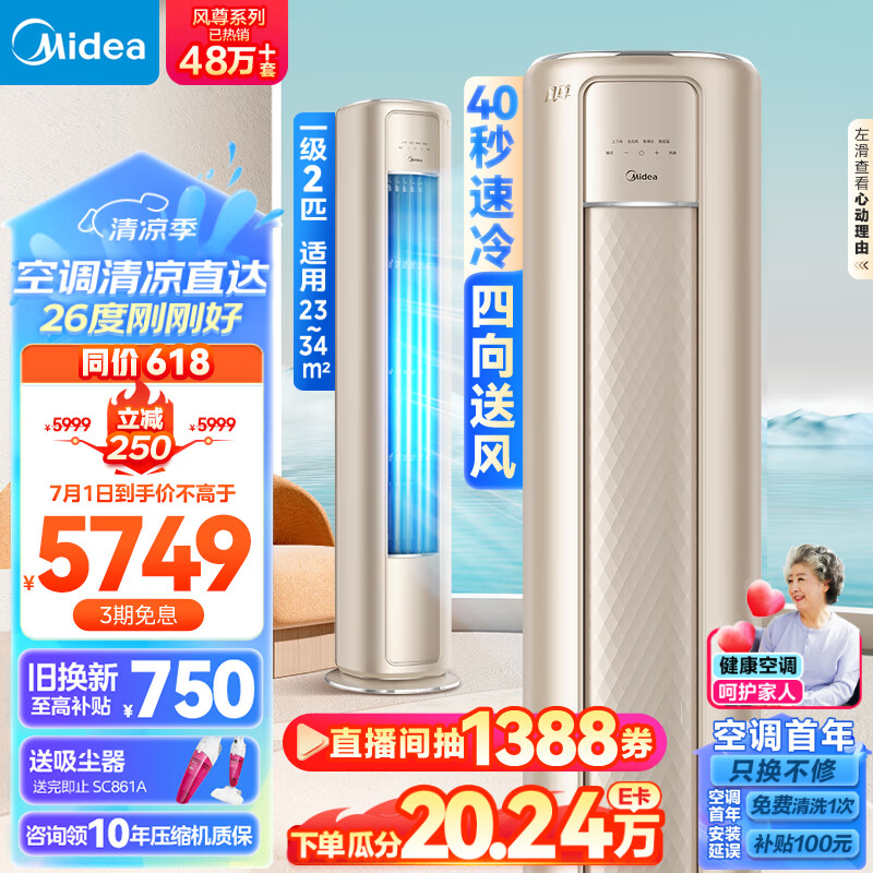 美的(Midea)空调 2匹 风尊 新一级能效 变频冷暖 独立除湿 客厅空调立式 空调柜机 智能家电 KFR-51LW/N8MZB1价格:5749.00元!
