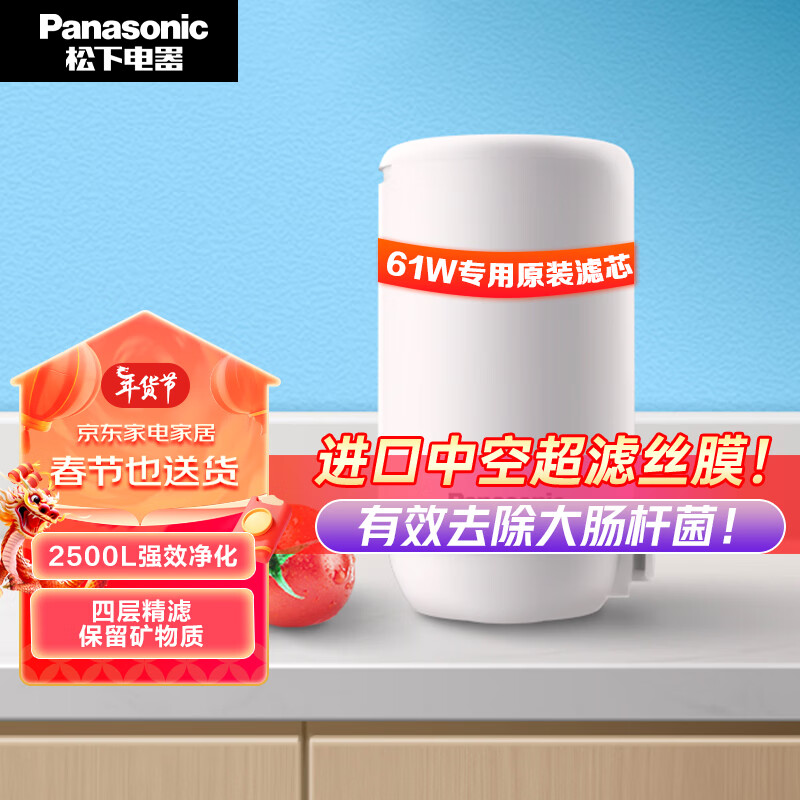 松下(Panasonic)净水器水龙头超滤器 家用厨房自来水过滤器滤芯 TK-LT02-U(61W专用滤芯)价格:199.00元!